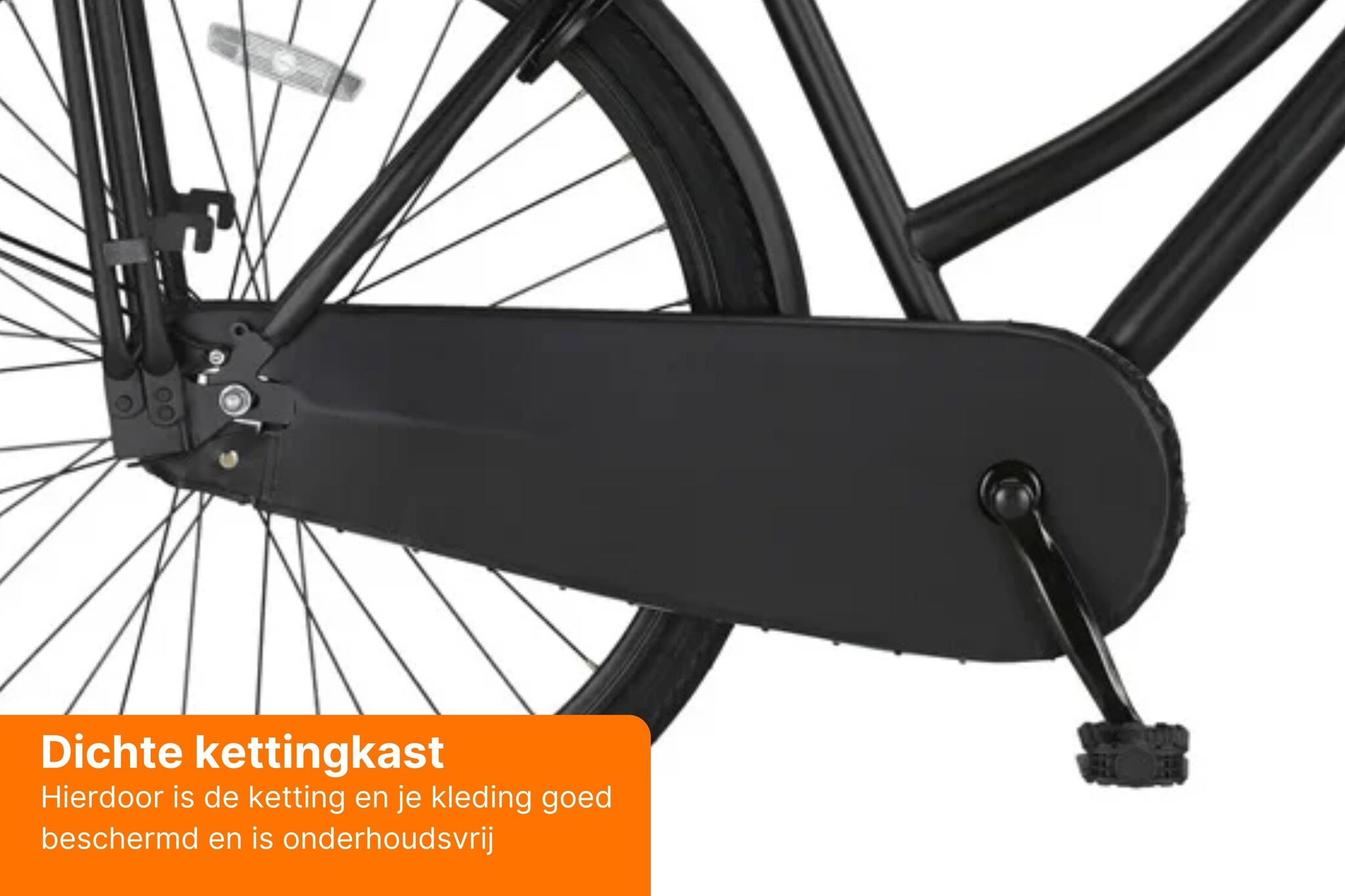 De betrouwbare terugtraprem zorgt voor een gecontroleerde rit en beperkt de gevaren van het verkeer. Met het klapstandaard zet je de fiets zonder zorgen weg. Het ringslot dient daarna als perfect middel tegen diefstal.