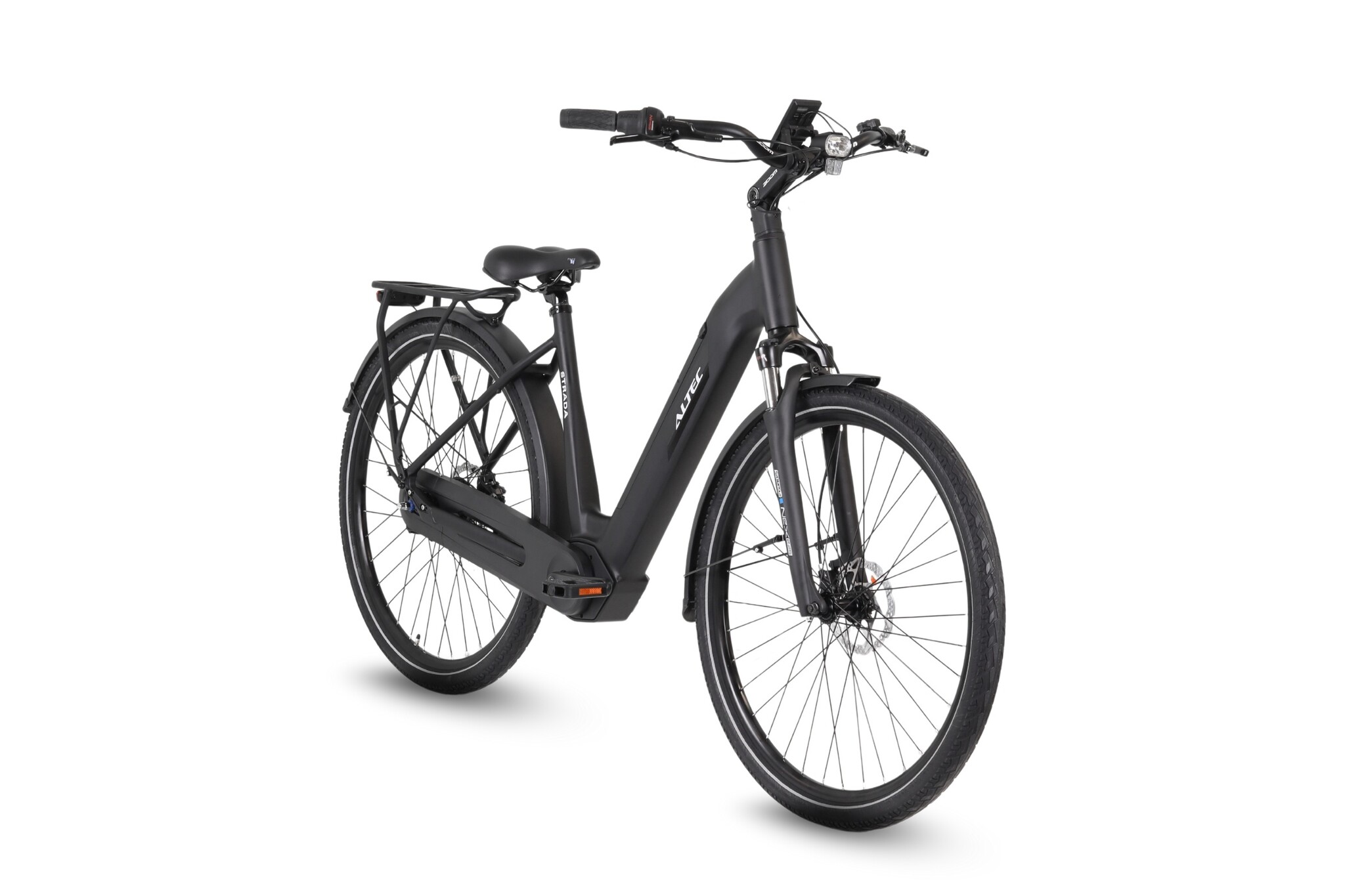 Ben jij op zoek naar een luxe, stille en krachtige e-bike die perfect aansluit bij het moderne stadsleven? De Altec Strada is een urban e-bike die stijl, kwaliteit en rijcomfort moeiteloos combineert. Met zijn matzwarte uitstraling, oversized aluminium frame en hoogwaardige afmontage is dit dé elektrische fiets voor iedereen die elke dag soepel en snel door de stad wil bewegen.