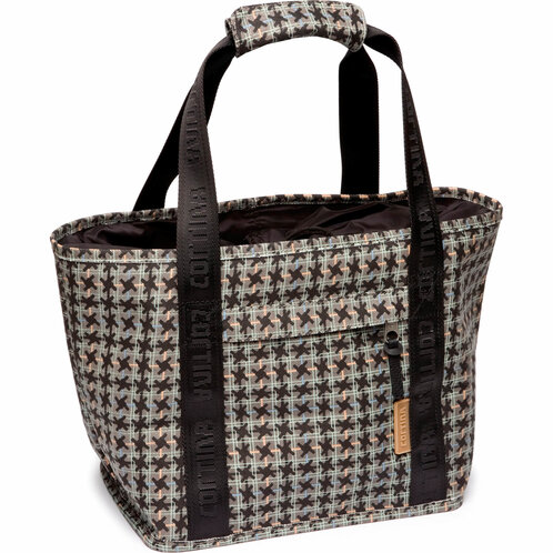 Cortina Handtas Vienna patroon. Deze handtas gemaakt van canvas is een inzettas speciaal voor de manden met het AVS kliksysteem. De tas heeft flappen voorzien van klittenband, waarmee deze aan de mand bevestigd kan worden. Met twee binnenvakjes. Voorzien van rubberen Cortina logo. Afmetingen lxbxh 30x20x28cm.