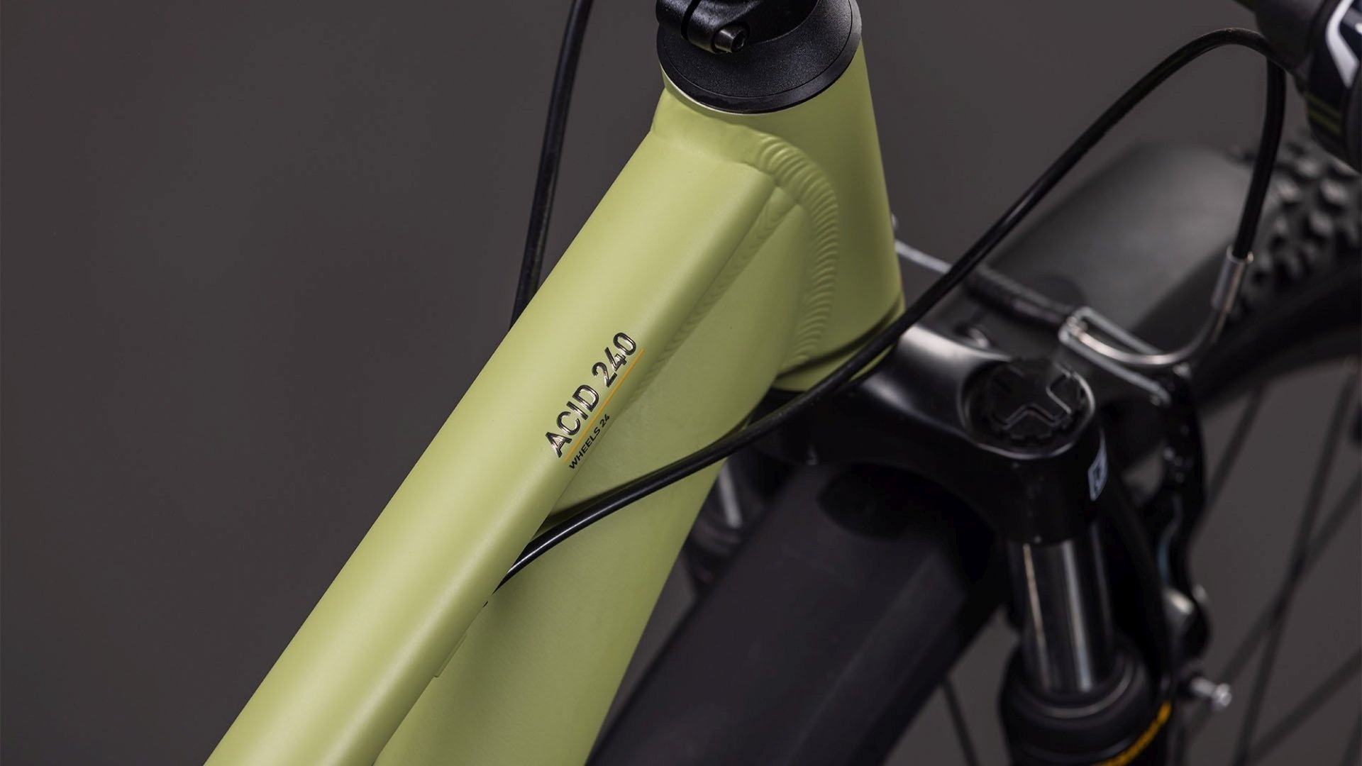 Concessies doen om dat het ‘toch maar’ een kinderbike is? Absoluut niet! De Acid 240 FE is gemaakt van hetzelfde hitte behandelde 6061 aluminium als onze grote-mensen-bikes, inclusief nokjes voor een bidonhouder en spatborden. Het frame is daarom net zo licht en degelijk, maar met de juiste proporties voor kinderen. Ook de geometrie is maatwerk: speels en levendig, maar tegelijkertijd stabiel en goed controleerbaar. En omdat we weten dat een valpartij desondanks niet uitgesloten is, hebben we de achterpat waaraan de derailleur is bevestigd vervangbaar gemaakt.