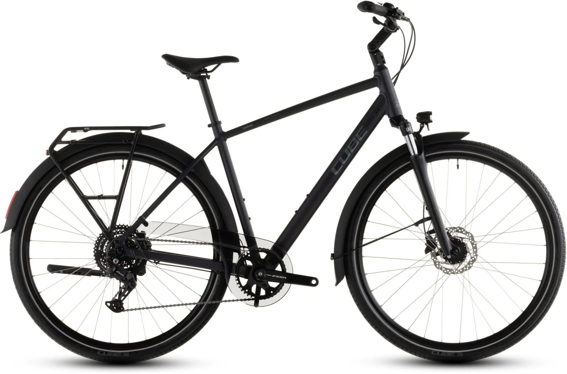 De basis van onze populaire Touring is een lichtgewicht diamantframe dat is gemaakt van aluminium buizen met een variabele wanddikte, voor een optimale mix van sterkte, gewicht en levendigheid. De kabels lopen binnendoor; strak en onderhoudsvriendelijk. De beproefde geometrie is zowel efficiënt als comfortabel. De fraaie achterpatten bieden niet alleen ruimte aan de semi-geïntegreerde bagagedrager en de remklauw, maar ook aan een achterstandaard. Dat is namelijk de beste plek als je met fietstassen onderweg bent.