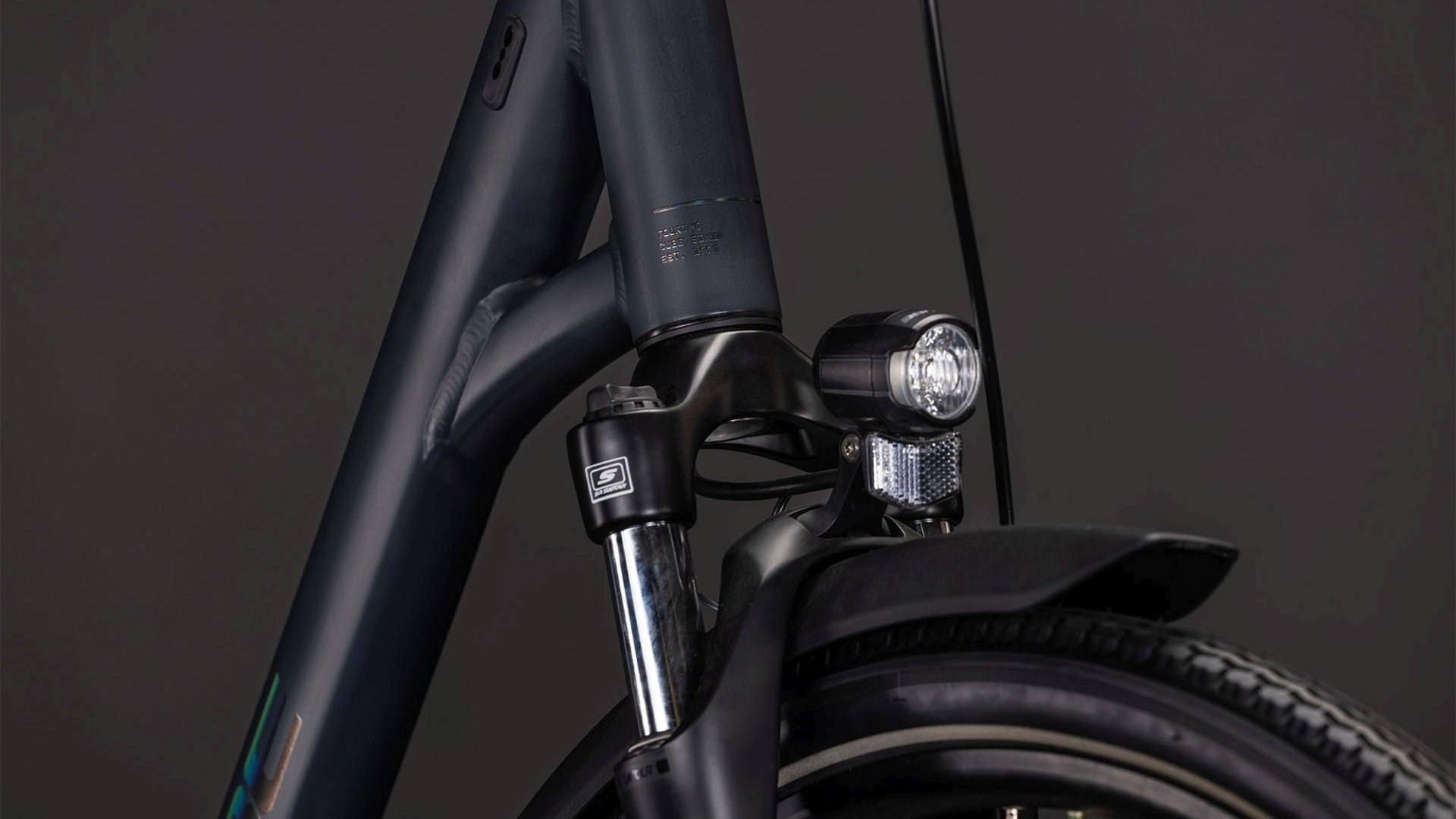 De basis van onze populaire Touring is een lichtgewicht frame met lage instap dat is gemaakt van aluminium buizen met een variabele wanddikte, voor een optimale mix van sterkte, gewicht en levendigheid. De kabels lopen binnendoor; strak en onderhoudsvriendelijk. De beproefde geometrie is zowel efficiënt als comfortabel. De fraaie achterpatten bieden niet alleen ruimte aan de semi-geïntegreerde bagagedrager en de remklauw, maar ook aan een achterstandaard. Dat is namelijk de beste plek als je met fietstassen onderweg bent.